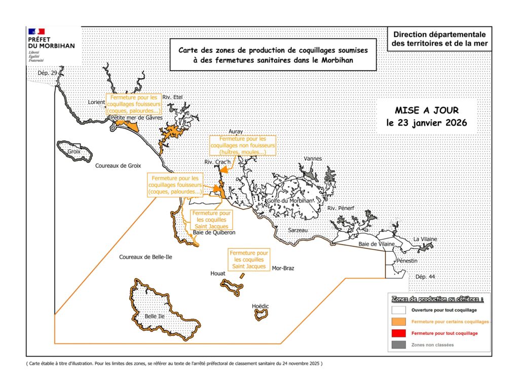 Évolution de la situation sanitaire des gisements de coquillages au 23 janvier 2026