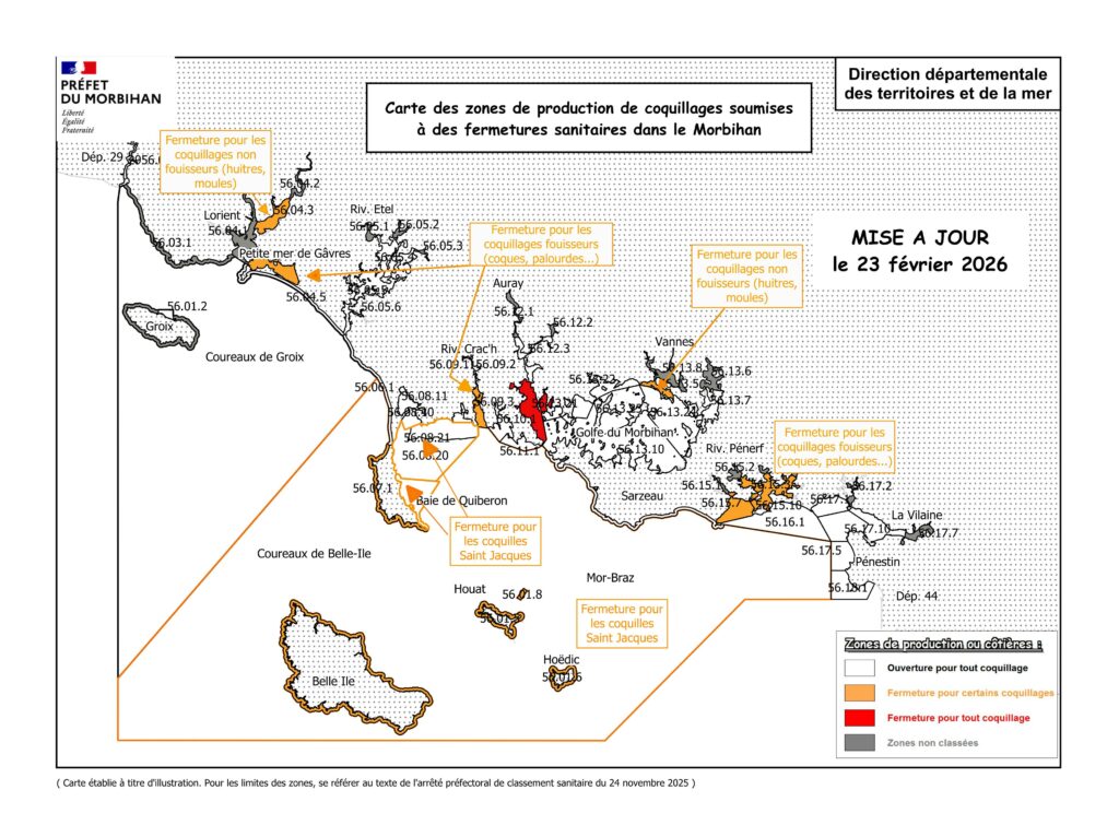 Évolution de la situation sanitaire des gisements de coquillages au 23 février 2026